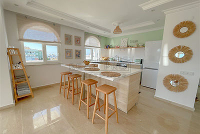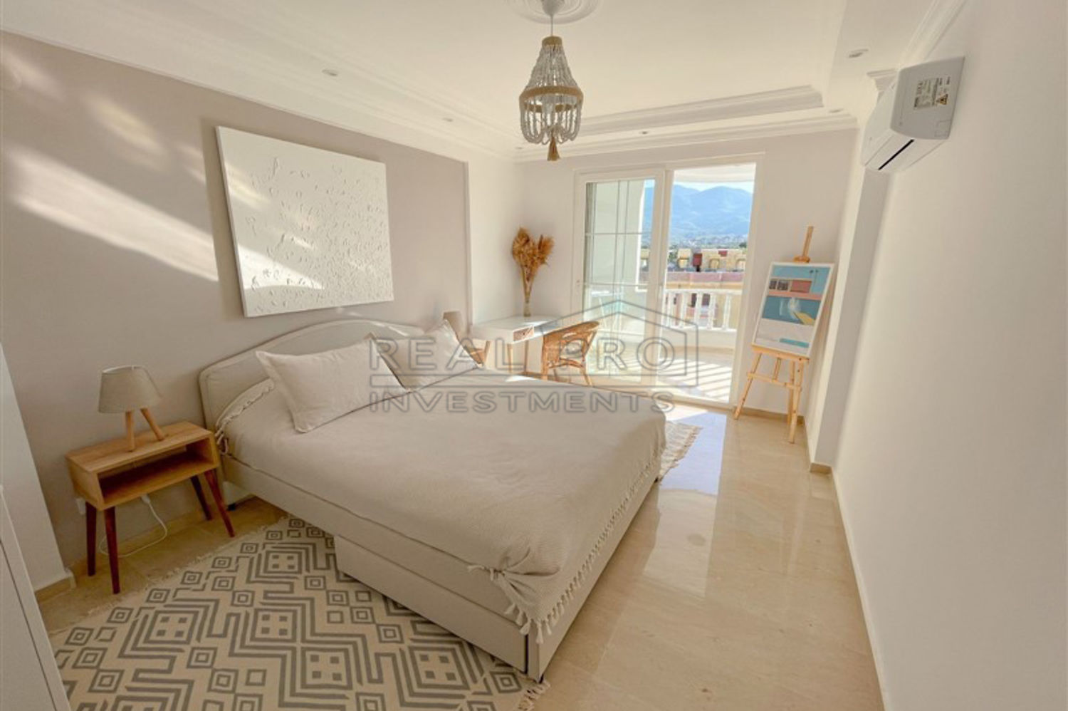 - Spacious fully renovated flat with a total area of 115 m², located on the eighth floor, consisting of a living room combined with an open kitchen, two bedrooms, two bathrooms - equipped with showers - and two open balconies with stunning views of the green slopes of the Taurus Mountains. The modern design of the flats is made in eco-style and every detail has been thought through and corresponds to the general idea.