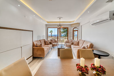 - Beachfront apartment with three bedrooms, one bathroom, a separate toilet and two balconies, on the first line with sea view just a few footsteps from the beach in Alanya Mahmutlar