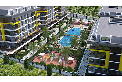 - The complex consists of five five-storey buildings, located in a gated area with rich infrastructure, allowing one to fully enjoy the living comfort. One can easily reach the beach (400 m) and the centre of Kestel is just 300 m away. All amenities, necessary in daily life, are nearby. In Kestel, you will find cosy bistros and restaurants, chain shops and small markets, pharmacies, hairdressers, parks and children's playgrounds, etc