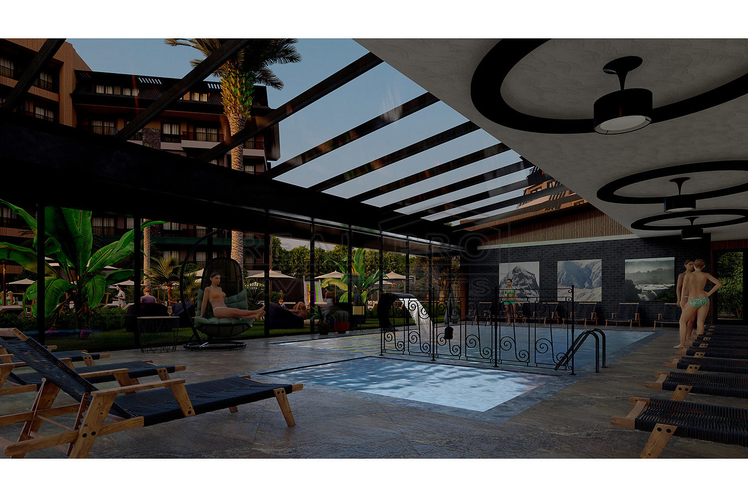 - The residence will feature an exceptionally extensive internal infrastructure including outdoor swimming pool with slides, a children's pool, sun terraces, a poolside bar, an indoor swimming pool and a SPA centre with sauna, Turkish bath and massage rooms, in addition, the residence is equipped with a gym, a children's playroom - for a rare rainy day - and, of course, a playground, walking paths, a tennis court and a basketball court.