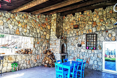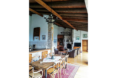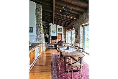 - As you can see from the pictures, the villa is very cosy thanks to the use of authentic materials such as the natural stone walls, wooden ceilings, hardwood floors and the fireplace in the living room, but also equipped with all modern comforts such as underfloor heating and air conditioning