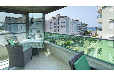 - Two bedroom apartment located on the third floor of a residence built in 2007, with a swimming pool and a garden, in the center of the Oba district and 50 meters from the sea, the coastline of this part of the city is represented by a long sandy beach, which is rightly considered one of the cleanest and best-kept in Alanya, for which it received the prestigious international recognition "Blue Flag"