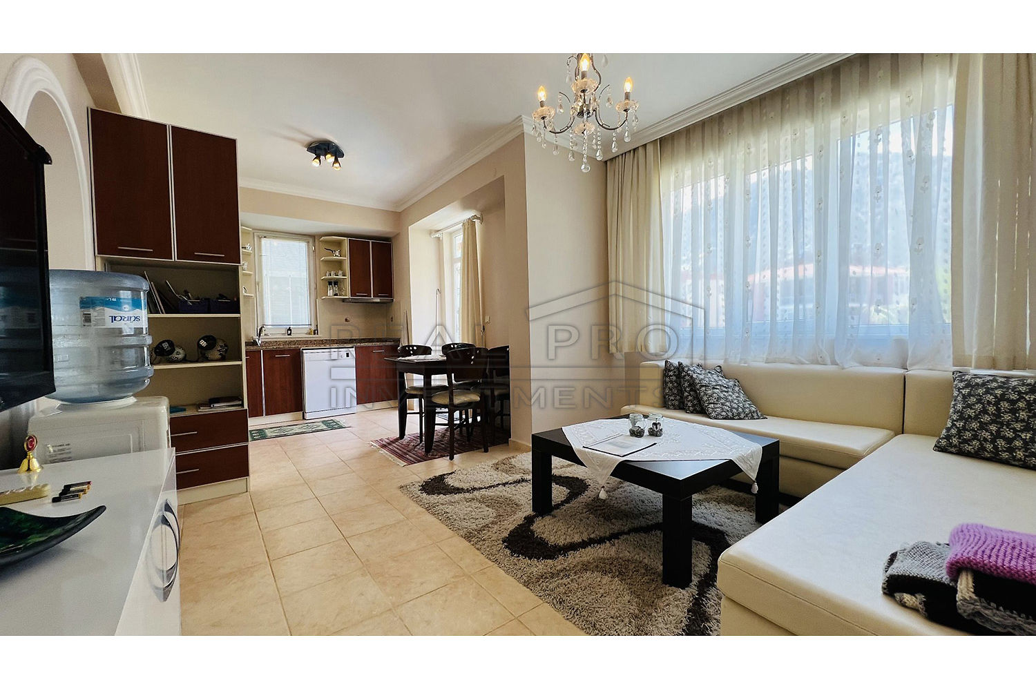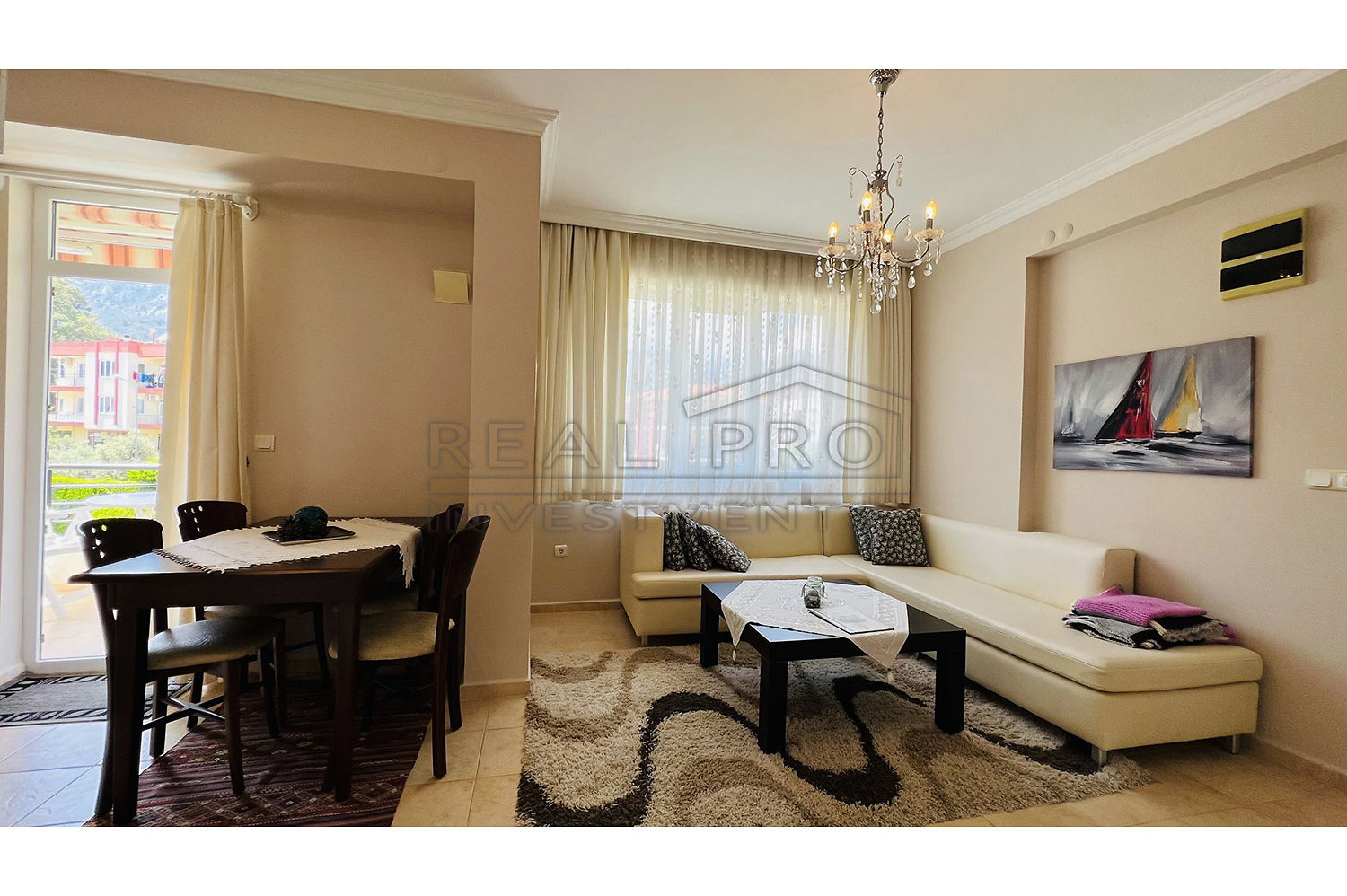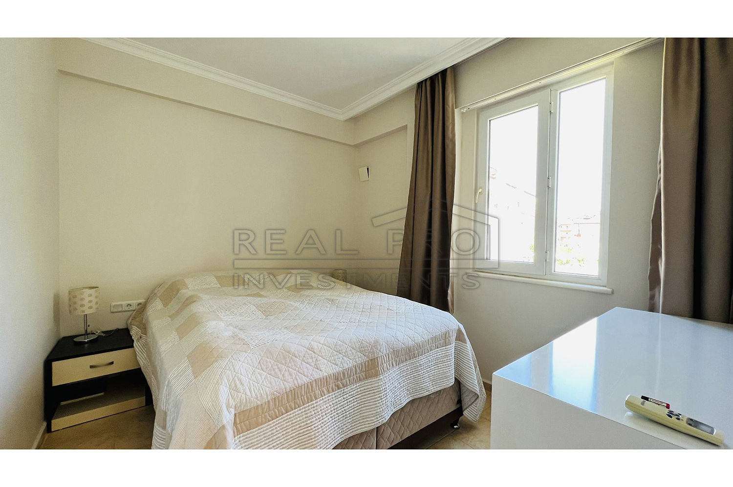 • Our flat for sale in Aslanbucak Kemer consists of two bedrooms, a living room with an open kitchen, a bathroom, two balconies and a laundry room (storage room), in a nice complex with beautiful views of the Taurus Mountains, there is a large balcony at the front and a long balcony at the back