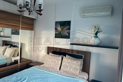- The flat is offered for sale fully furnished and ready to move in and is equipped with comfortable furniture, natural gas central heating, air conditioning in all rooms, an open kitchen with all appliances, curtains, lighting, television, etc, from the terrace you have a view of the swimming pool and the impressive Taurus Mountains