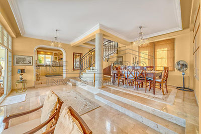 - The villa is fully equipped with high-quality furniture in a classic style and the latest appliances, the living room is successfully divided into a lounge, close to a panoramic window overlooking the sea, with soft sofas, armchairs and a coffee table, and a dining area with a large table, the spacious kitchen is every housewife's dream and is equipped with a refrigerator, built-in dishwasher and oven, the bedrooms are furnished with comfortable beds and furniture, and the bathrooms are equipped with stylish showers and modern fixtures