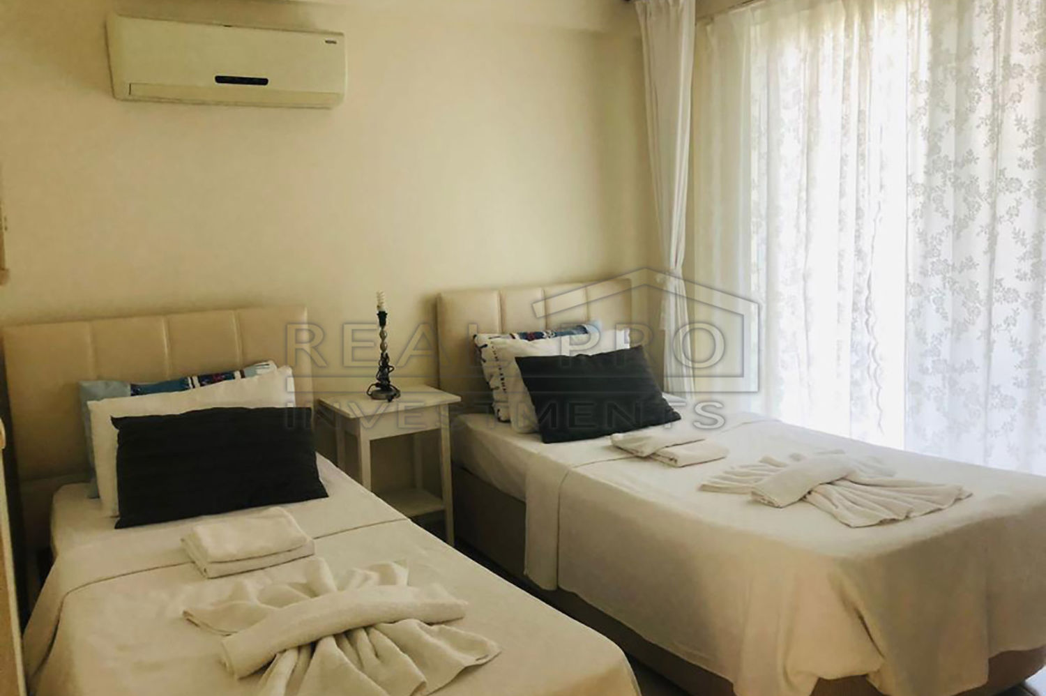 - Apartment with two bedrooms in an exclusive residence with private beach and various amenities such as a restaurant, poolside bar, three large shared swimming pools, fitness, sauna, Turkish bath, shops and 24/7 security, the residence is only a few meters from the famous Çalış sandy beach.