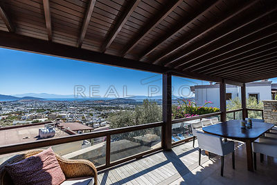 - Located in the up-and-coming region of Konacık, where most luxury projects are being built, this villa offers plenty of privacy. When you walk into the property, you are greeted with a beautiful unique door, leading to the large living room with semi-open kitchen, adjacent to a large balcony offering idyllic views of the bay. The plot area is 600 m² and the villa has a living space 250 m², and a large balcony on the upper floor. In addition, there is a shaded parking area for two cars.