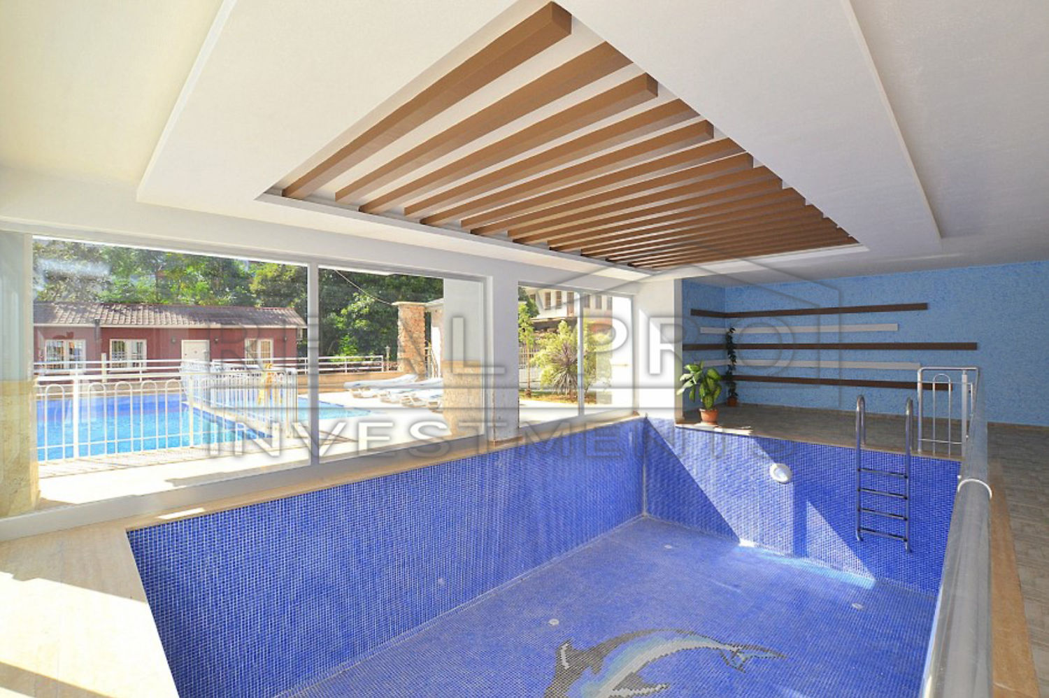 • Landscaped garden with swimming pool, sun loungers and parasols, children's pool, playground, indoor pool, sauna, fitness, generator, enclosed area with 24/7 security, on-site management.