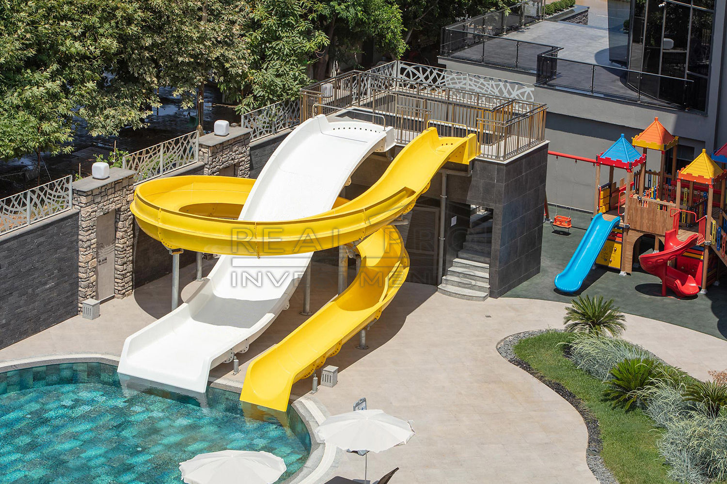 - The flat is located in a modern residence with excellent internal infrastructure: an outdoor pool with slides, an indoor pool, a fitness club, a sauna, a hammam, a jacuzzi, a SPA centre, a playground and a playroom for a rare rainy day