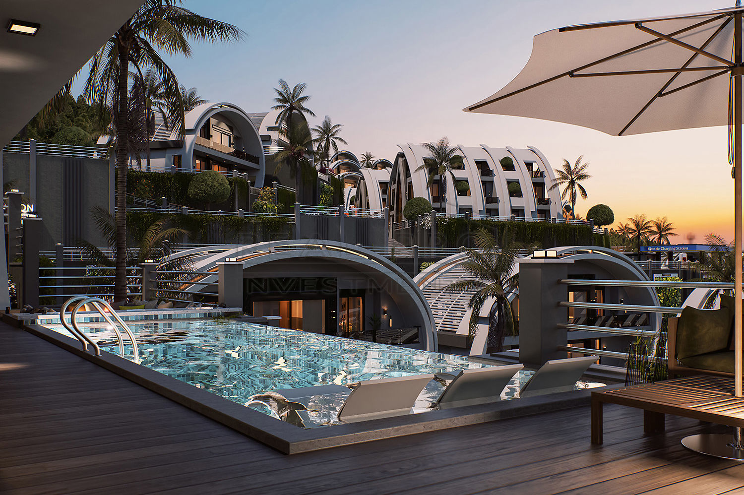 - Brand new luxury project in Alanya Kargıcak: in a stunning - ultra-modern - residential complex with a very extensive infrastructure, comparable to a 5* hotel, different types of properties are offered for sale: exclusive three-bedroom villas, private garden with private infinity pool and luxury one- to two-bedroom flats, some with a private garden, and three-bedroom Penthouses