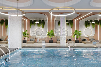 - We already wrote above that the residence has a very good infrastructure, which is quite impressive: beautiful gardens with cosy sitting areas and barbecue facilities, large swimming pools - with a poolside bar - and sun terraces and an aqua park, of course there is also a children's pool, a playground as well as a playroom for a rare rainy day for the little ones, a SPA centre with a heated indoor pool, Turkish bath, Roman steam bath, Jacuzzi, sauna and massage rooms, fitness, billiards, table tennis, cinema, a bistro and restaurant, shops, a basketball and tennis court, etc. Interesting detail: wifi will be available throughout the residence