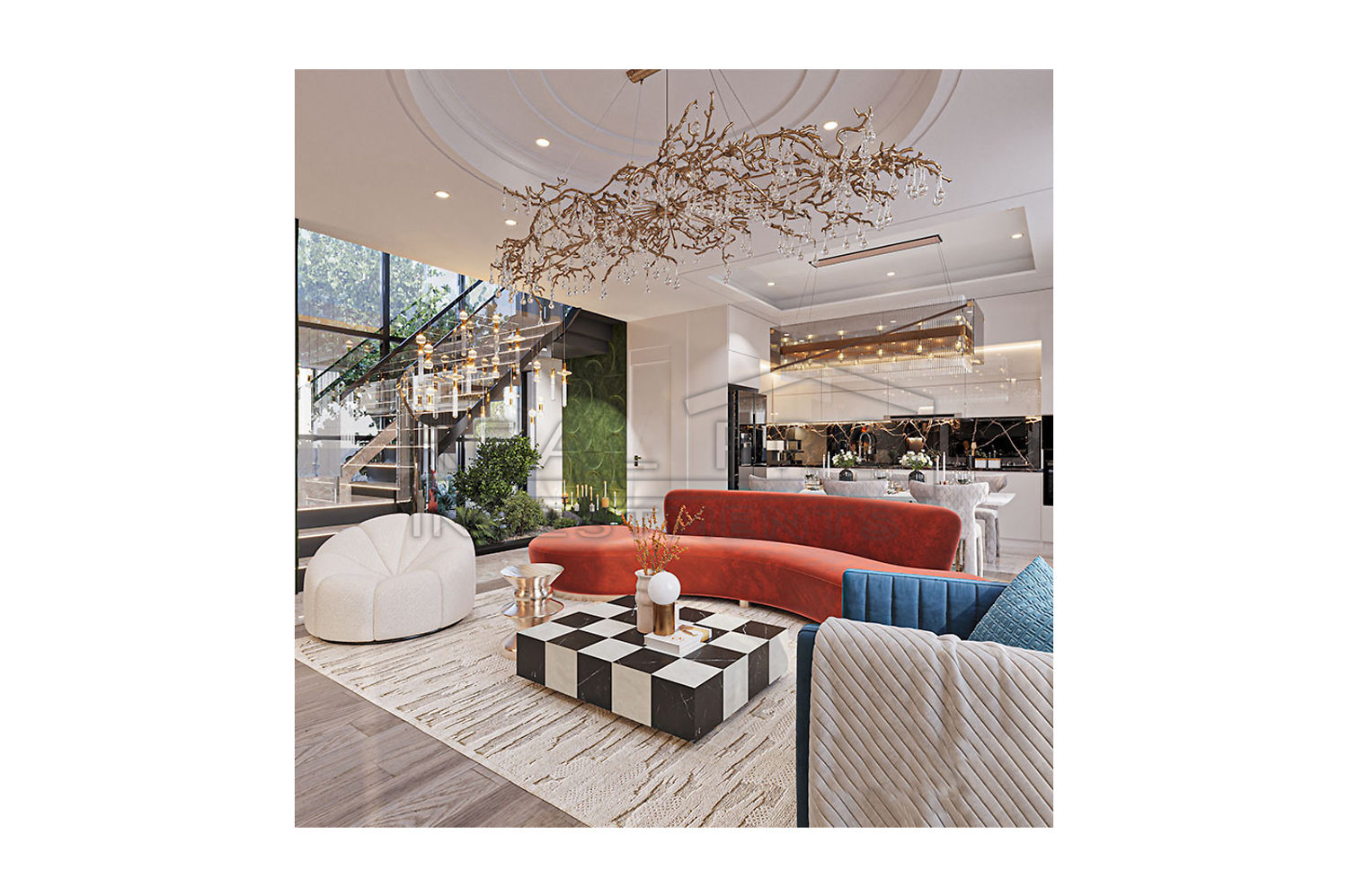 - The villa complex is built on a plot of 5215 m² and consists of 18 private villas. All villas have the same living area - 226 m² - and the same layout: a living room with open plan kitchen, three bedrooms with en-suite bathrooms, a guest bathroom and two terraces.