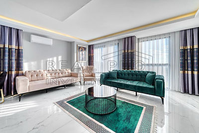 - The living room on the first floor is divided into a lounge with soft sofas, an armchair, a coffee table and a side table, the kitchen with a dining table is equipped with all electrical appliances with the latest technology, the cosy bedrooms have comfortable beds and bedside tables, making the flat completely move-in-ready: just unpack your bags and you are at home in this beautiful flat in Mahmutlar