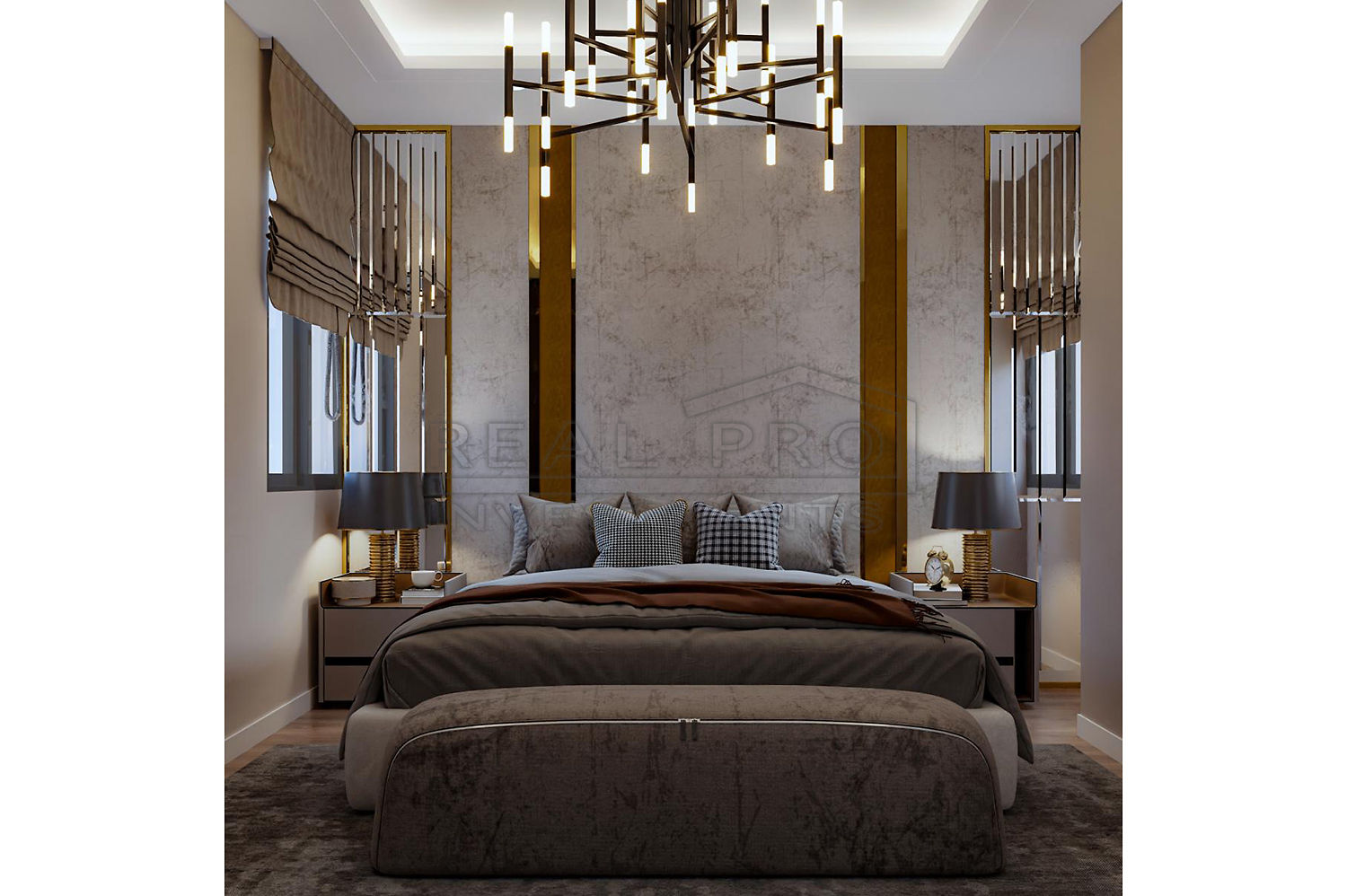 - Indirect lighting, built-in LED spot lights