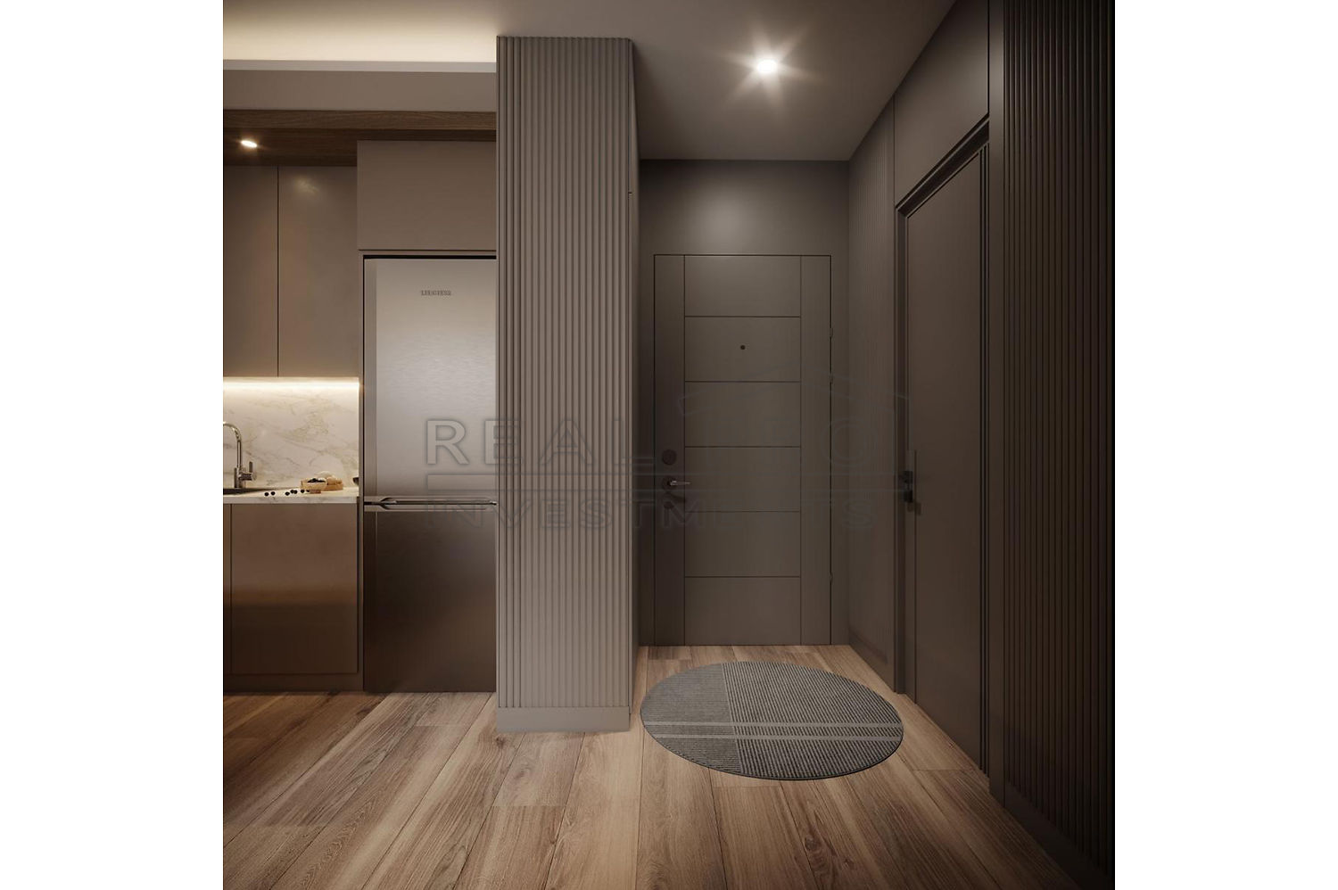 - All flats are impeccably finished with the best materials, a built-in kitchen with basic appliances and fully fitted designer bathrooms, underfloor heating and air conditioning, LED lighting etc, are already included in the price