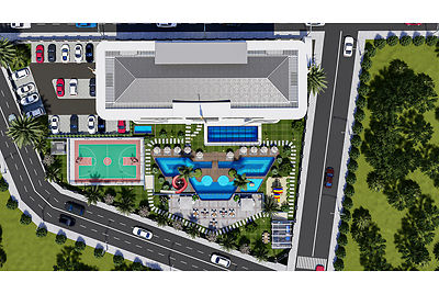 - The residential complex project was developed by one of Turkey's leading architects, taking into account modern trends and high quality standards. So of course, the internal infrasturcure is also excellent, including an infinity pool, water park, children's and indoor pools, fitness club, sauna, hammam, steam bath, Jacuzzi, multi-court, playground, barbecue, etc.