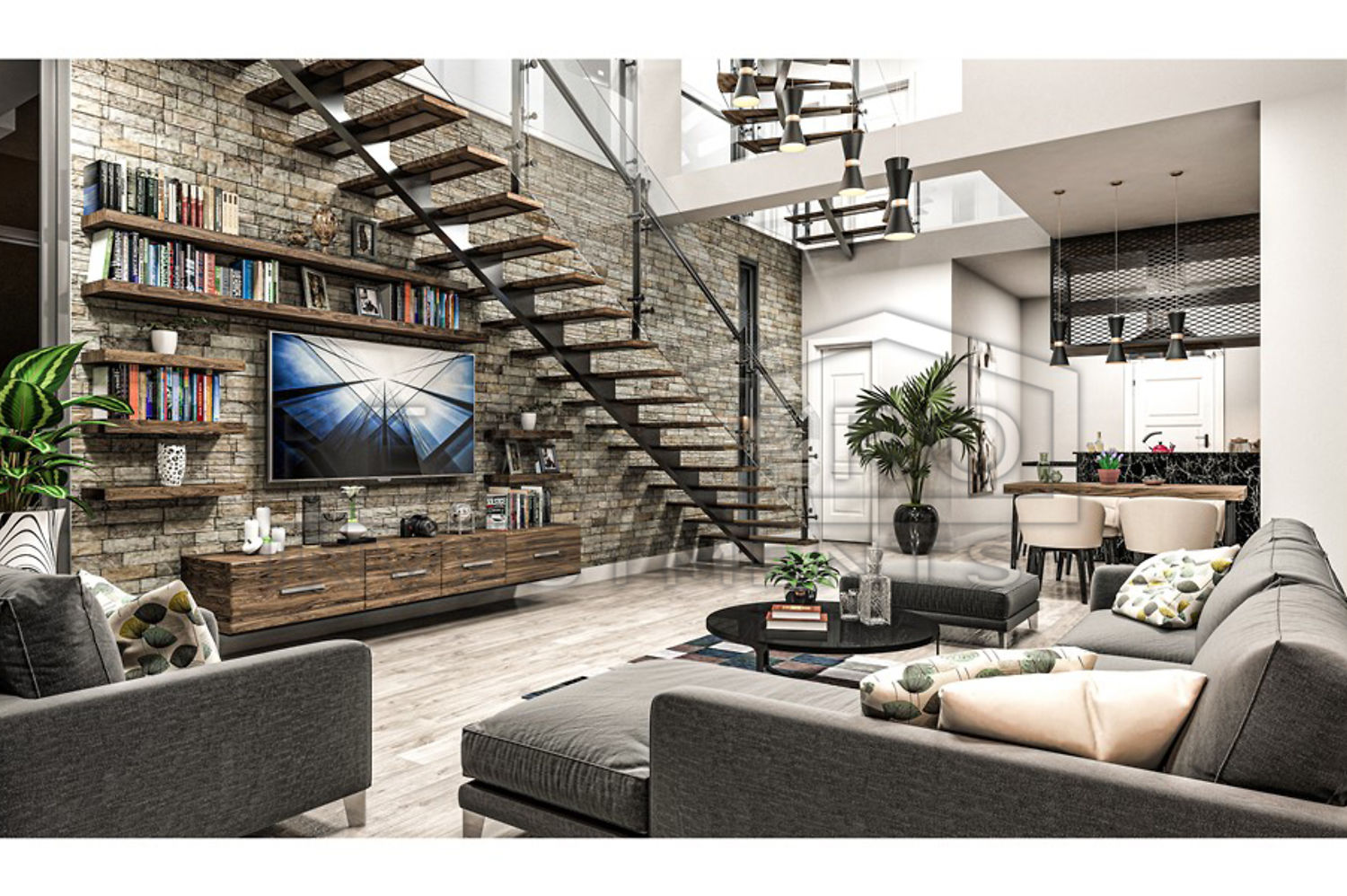 - Indirect lighting, built-in LED spot lights
