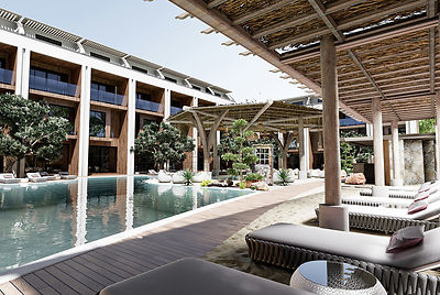 - The eye-catchers are of course the large garden with swimming pools - one of which is heated - and the tropical island in the middle with a pool bar and Jacuzzi, for the little ones there is a children's pool, a playground and even a playroom for a rare rainy day, furthermore the residence will have a sauna, fitness, a reception and a bistro, wifi in the common parts of the complex, CCTV camera surveillance, etc.