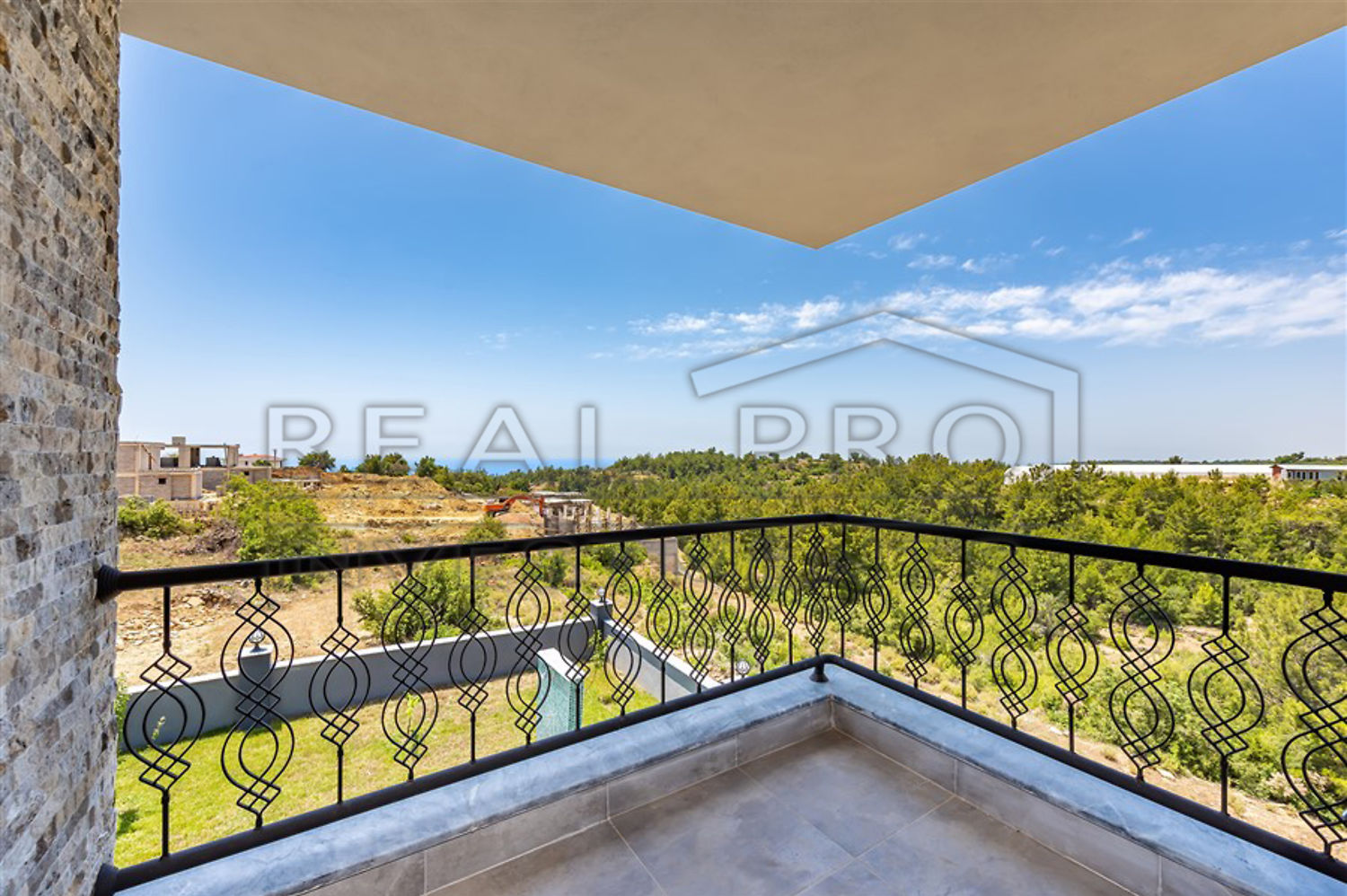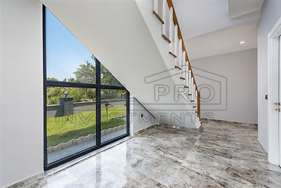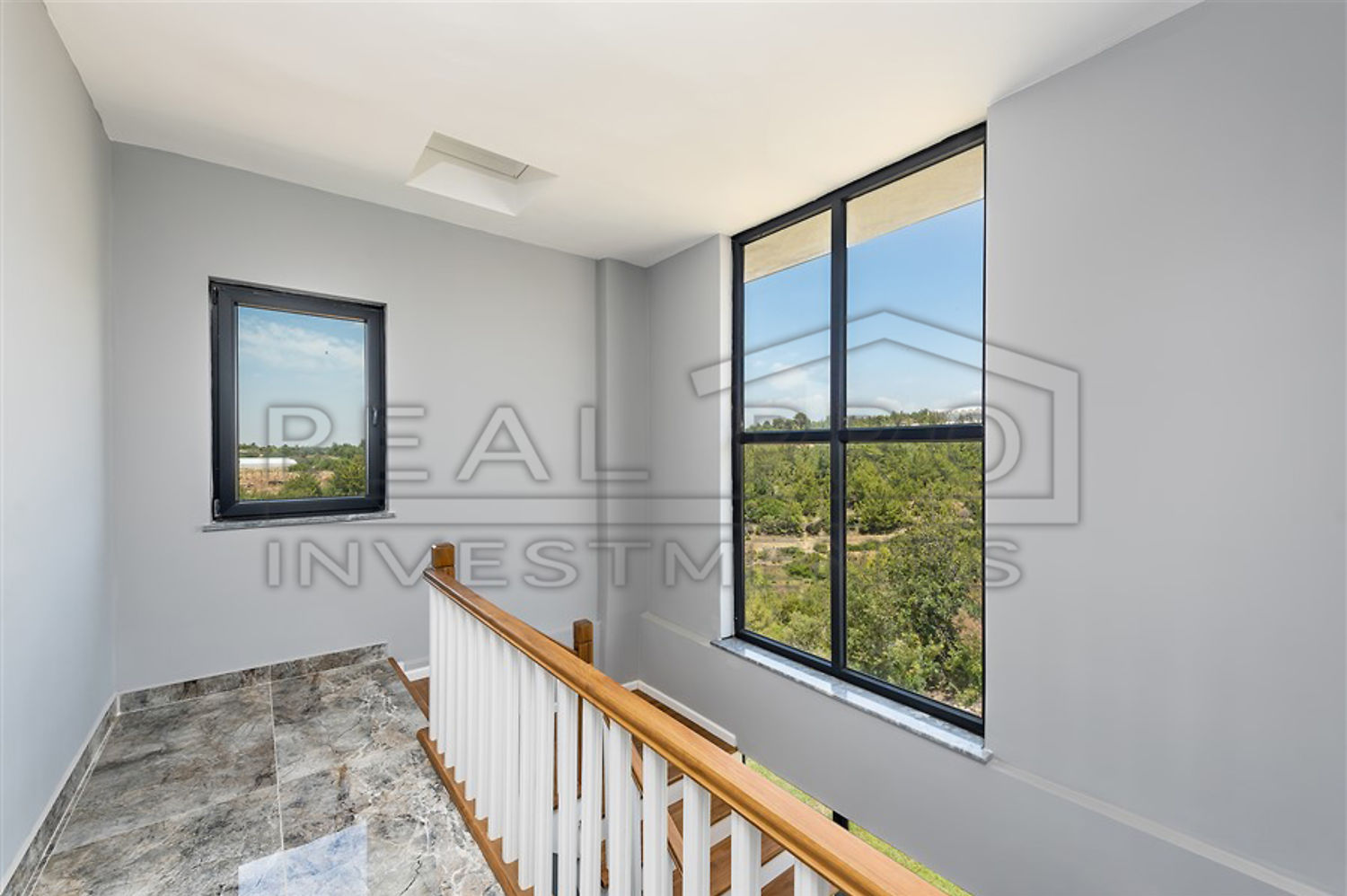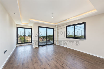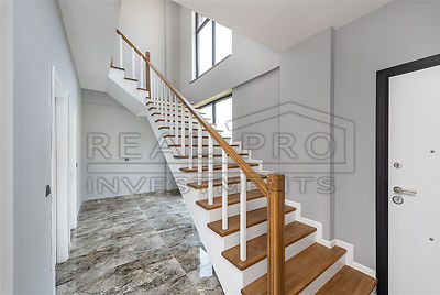 - A convenient staircase leads from the hall to the upper floor. The villa has four bedrooms and three fully fitted designer bathrooms. Two of the four bedrooms have private balconies offering pleasant views of the pine forests of Avsallar and, in the distance, the Mediterranean Sea. The villa has a total living space of 240 m² and is - as you can see from the photos - modernly finished with the best materials.
