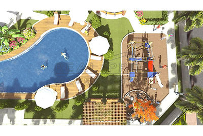 - The residence will have an extensive infrastructure including a garden with subtropical plants and barbecue facilities, a large swimming pool and a children's pool and playground for the little ones, a tennis and basketball court, Turkish bath, sauna, fitness, cinema, etc.
