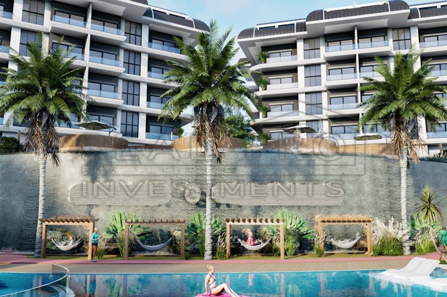 - New luxury residence with extensive infrastructure in Kargıcak Alanya, located 1000 metres from the beach and 700 metres from Kargıcak centre. The residence will consist of four five-storey blocks with one to three bedroom flats, built on enclosed grounds of almost 10,000 m².