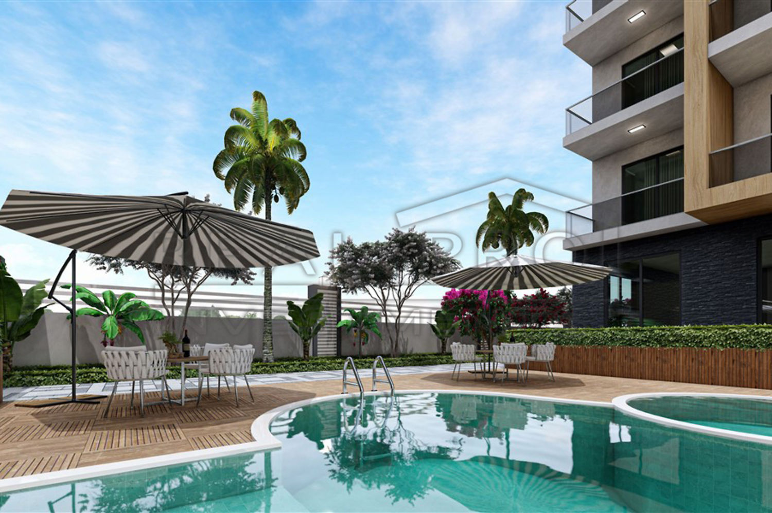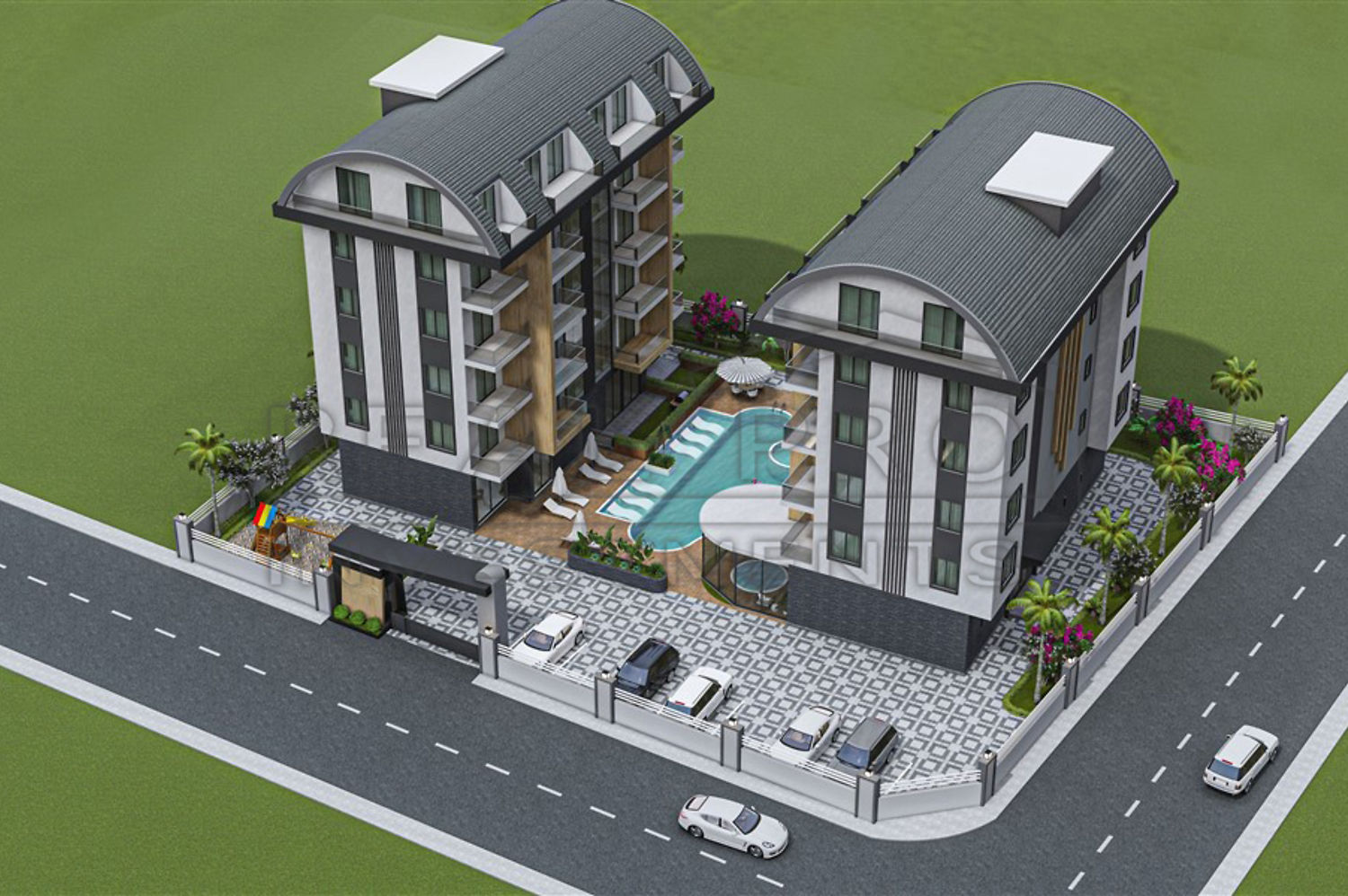 - New flats in Oba, one of the most prestigious areas of Alanya, well located 1200 metres from the beach and 600 metres from Oba town centre. You can choose between one and two bedroom flats with an area ranging from 47 to 75 m².