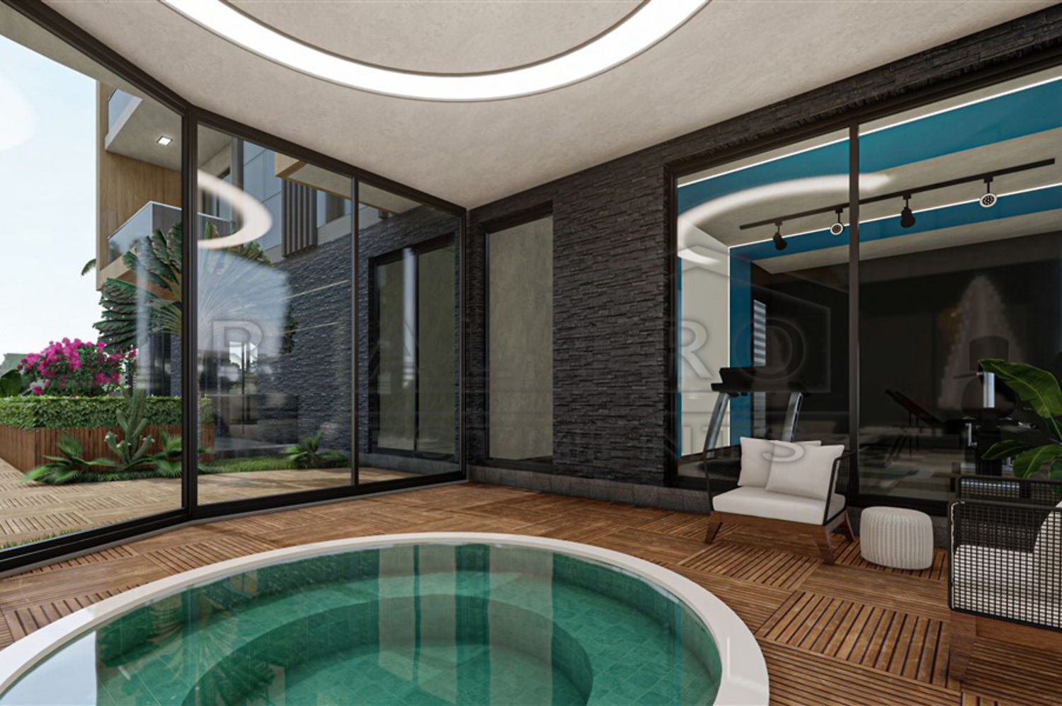 - Indirect lighting, built-in LED spot lights