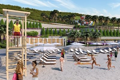 Extensive infrastructure including an indoor and outdoor swimming pool, children's pool, aqua park, jacuzzi, SPA-centre, fitness centre, beauty salon, yoga and meditation room, music room, a bar and a restaurant and so on. And, of course, maintenance staff is available on-site to solve any problems immediate.