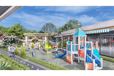 - The complex consists of four four-storey buildings and an exceptionally extensive internal infrastructure such as a summer swimming pool with of course a children's pool, large sun terraces with sun loungers and parasols, for the little ones there is also a playground as well as a playroom for a rare rainy day, a SPA centre with Turkish bath, Roman steam bath, Jacuzzi, sauna, massage rooms and a heated indoor pool, a gym, billiards, a cinema, a bistro and a restaurant, barbecue facilities in the garden, etc.