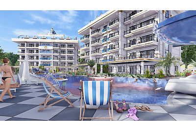 - New luxury residence with modern flats and with a very extensive infrastructure and a private beach Alanya Oba, Oba borders the centre of Alanya on one side and the comfortable and cosy district of Tosmur on the other.