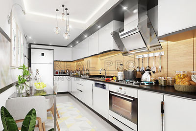 - All flats are finished with the best materials and come standard with built-in kitchens with basic appliances, fully finished designer bathrooms, LED lighting, high quality flooring etc