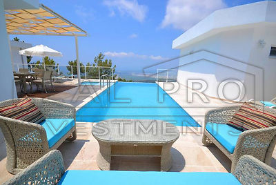 - Spacious modern single-level villa in Kalkan with private infinity pool, panoramic mountain views of the mountains and the Aegean Sea