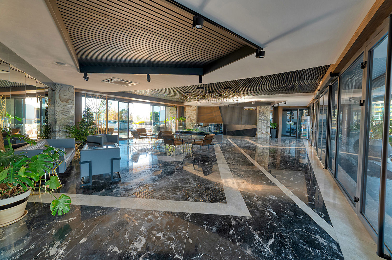 - Extensive infrastructure with indoor and outdoor swimming pool, aqua park, SPA centre, fitness, cinema, cafeteria, mini golf, mini club etc, see below for a full overview of the infrastructure