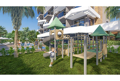 - Although this is a small-scale residence, the infrastructure will be quite impressive: a beautiful garden with barbecue facilities, a large outdoor pool and a heated indoor pool, for the little ones there is of course a children's pool, a playground as well as a playroom for a rare rainy day, a sauna, Jacuzzi and massage rooms, fitness, a poolside bar, etc.