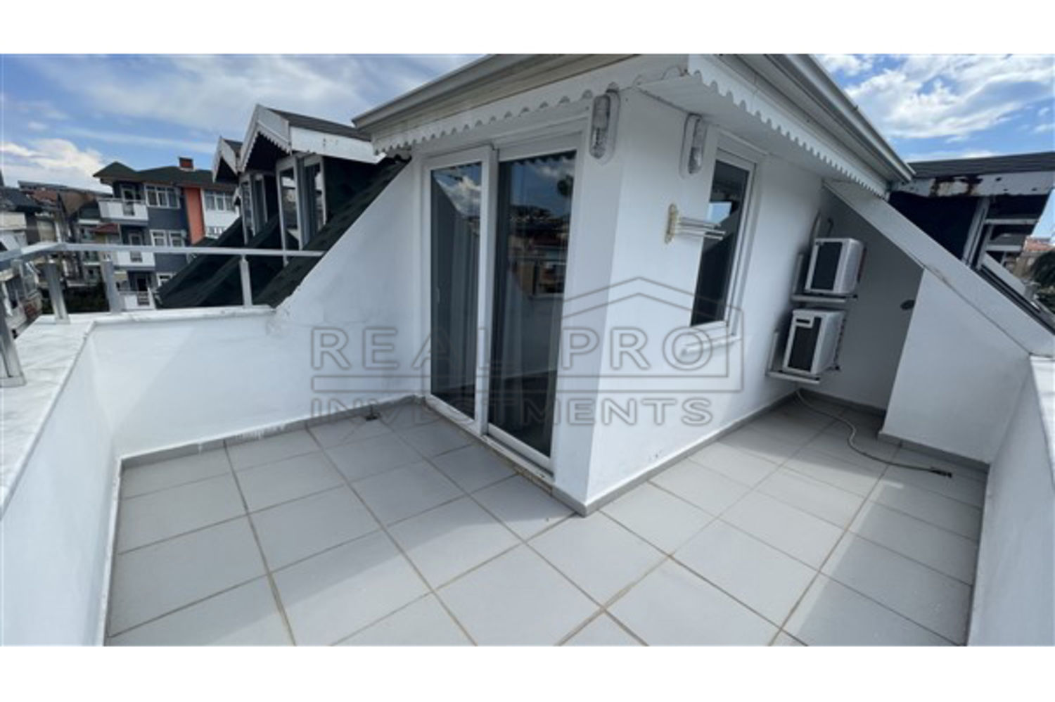- If you dream of a comfortable seaside flat with a spacious, modern layout and stylish design, this flat will definitely interest you. The duplex flat has a total area of 128 m², and is located on the fourth floor in a property built in 2017 in the centre of Alanya just 300 metres from the famous Cleopatra beach.