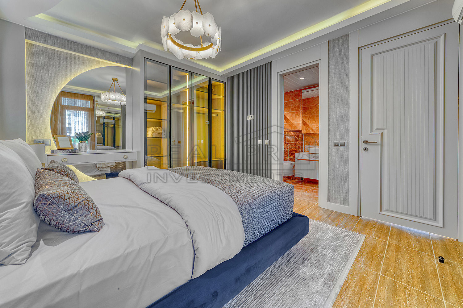 - The master bedroom with a large comfortable bed is also equipped with a modern spacious wardrobe with extra lighting, a closet with mirror and direct access to the private bathroom, the second bedroom is also equipped with a large double bed, wardrobe and a closet with mirror, the spacious hallway has a closet for storing clothes and shoes