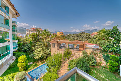 - Two balconies offer views of the Taurus Mountains and the infrastructure of the complex, which you can admire while sitting on soft garden furniture, the flat also features two bathrooms: one en-suite in the master bedroom and one for the second bedroom, both bathrooms are equipped with the necessary sanitary ware and furniture