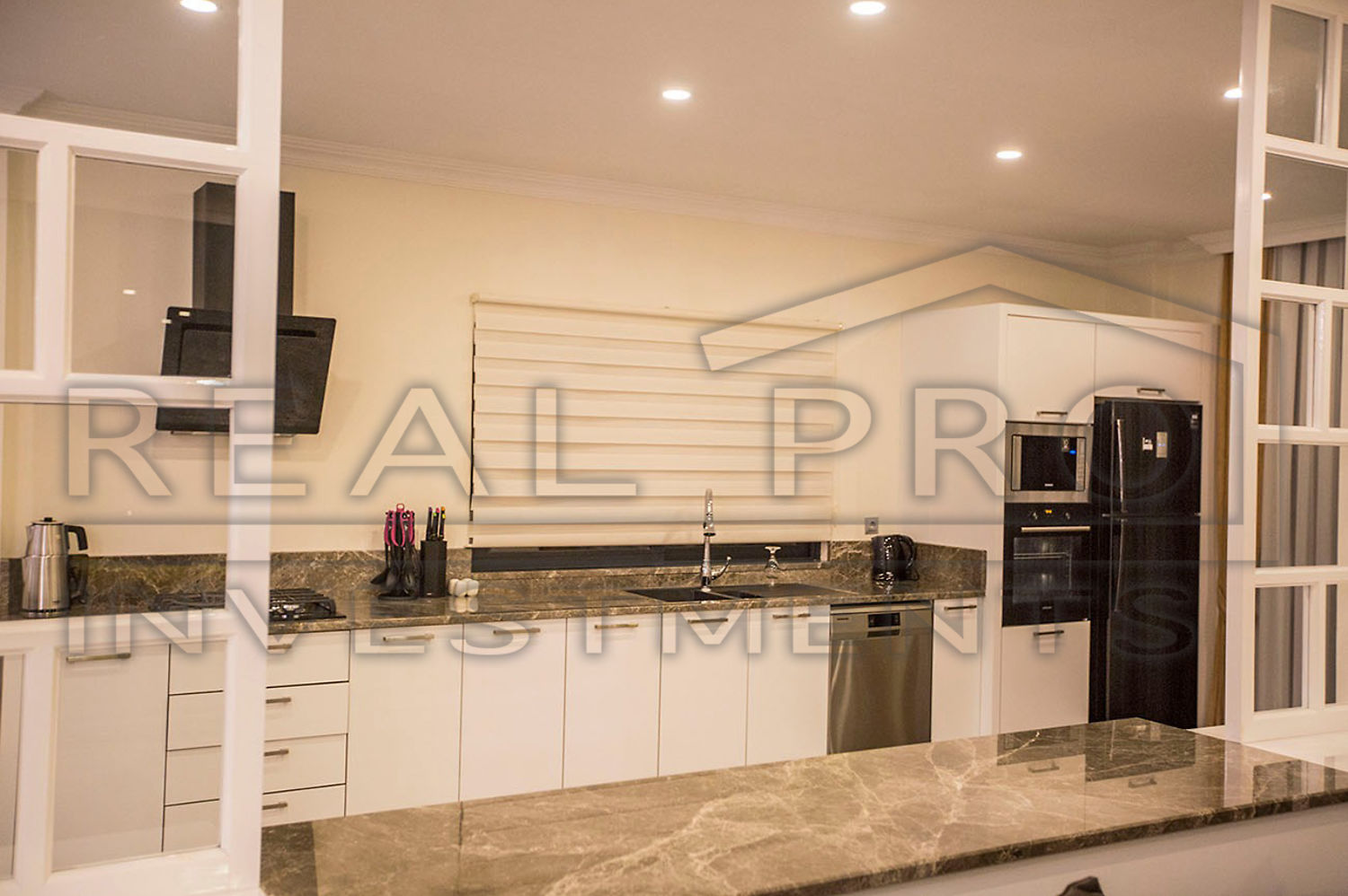 - Large living room with direct access to the terrace and the swimming pool, fully equipped modern kitchen, laundry room, air conditioning throughout the villa, central heating, marble floors, alarm, private parking, ...