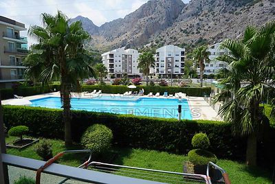 • Gelegen op de eerste verdieping met prachtig uitzicht op het Taurusgebergte en de tuin van het complex, overname van het meubilair is bespreekbaar