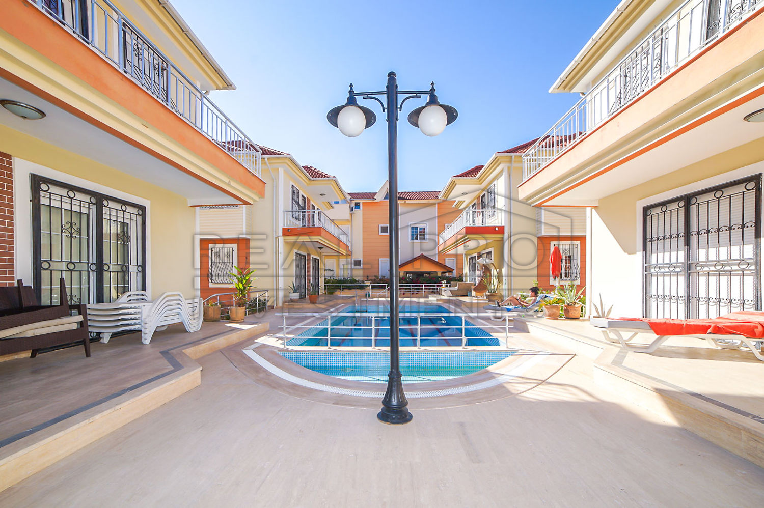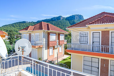 • Knappe vrijstaande en volledig ingerichte villa in een gezellige goed onderhouden kleine residentie met twee zwembaden in Kemer centrum te koop