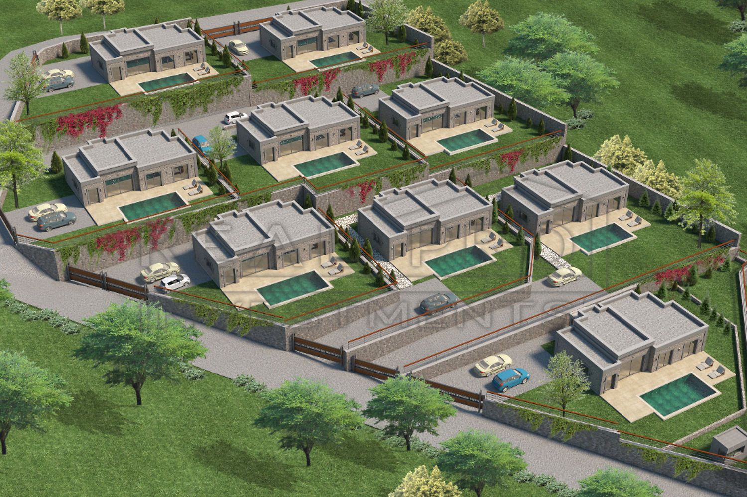 • Iedere villa beschikt over drie slaapkamers - allemaal met en-suite badkamers - en een apart gastentoilet, een ruime woonkamer met volledig ingerichte moderne Amerikaanse keuken, een wasplaats en een groot terras met uitzicht op de omringende natuur, deze magnifieke villa's zijn perfect geschikt voor permanente bewoning