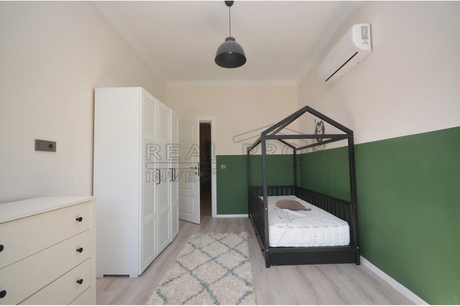 • Muren geschilderd met afwasbare satijnglans verf