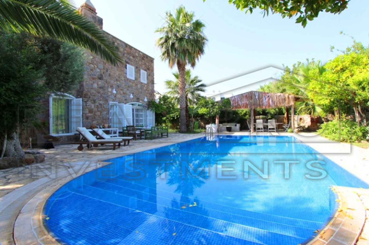 Karaktervolle natuurstenen Türkbükü villa in een 2000 m² tuin met citrusbomen