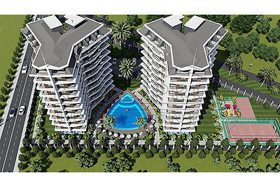 - Nieuwe luxe residentie in Avsallar Alanya op 800 meter van het strand en 1200 meter van Avsallar centrum, bestaande uit twee gebouwen van negen verdiepingen op een afgesloten terrein met een degelijke interne infrastructuur.