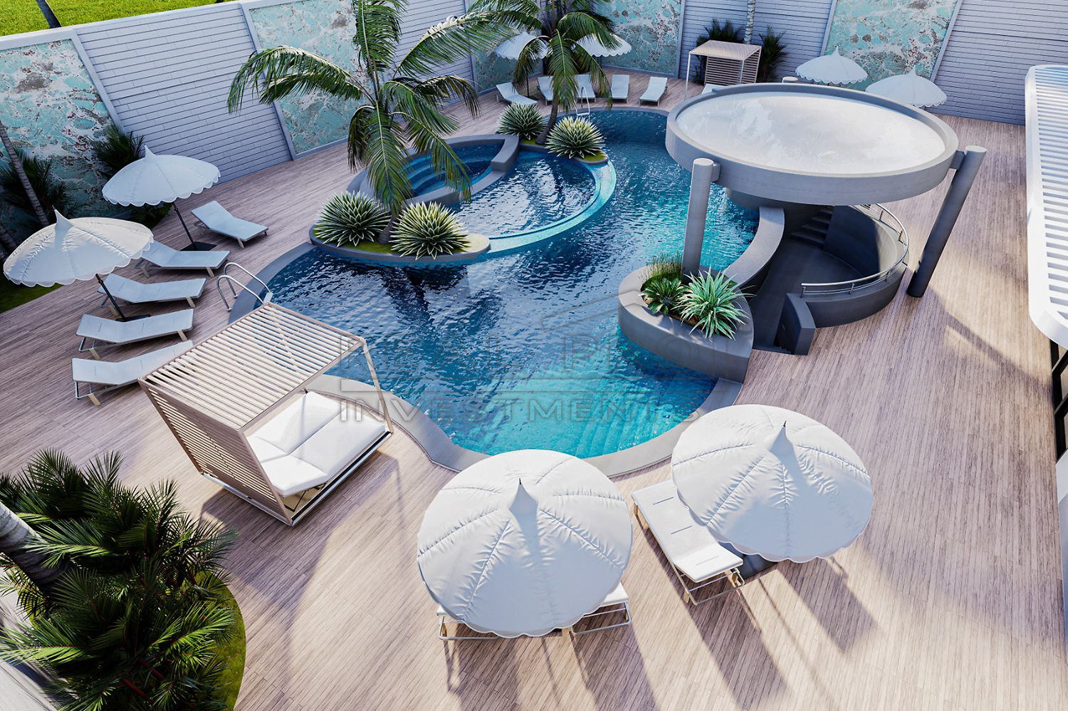 - De infrastructuur van het complex, dat op twee kilometer van de Middellandse Zee en op 500 meter van het centrum van Gazipaşa komt te liggen, bestaat uit een buitenzwembad, sauna, Turks bad en fitnessruimte, er is een grote parkeerplaats op het terrein voor eigenaren en het gebouw is voorzien van twee ruime liften, het hele complex wordt uitgerust met CCTV bewakingscamera's