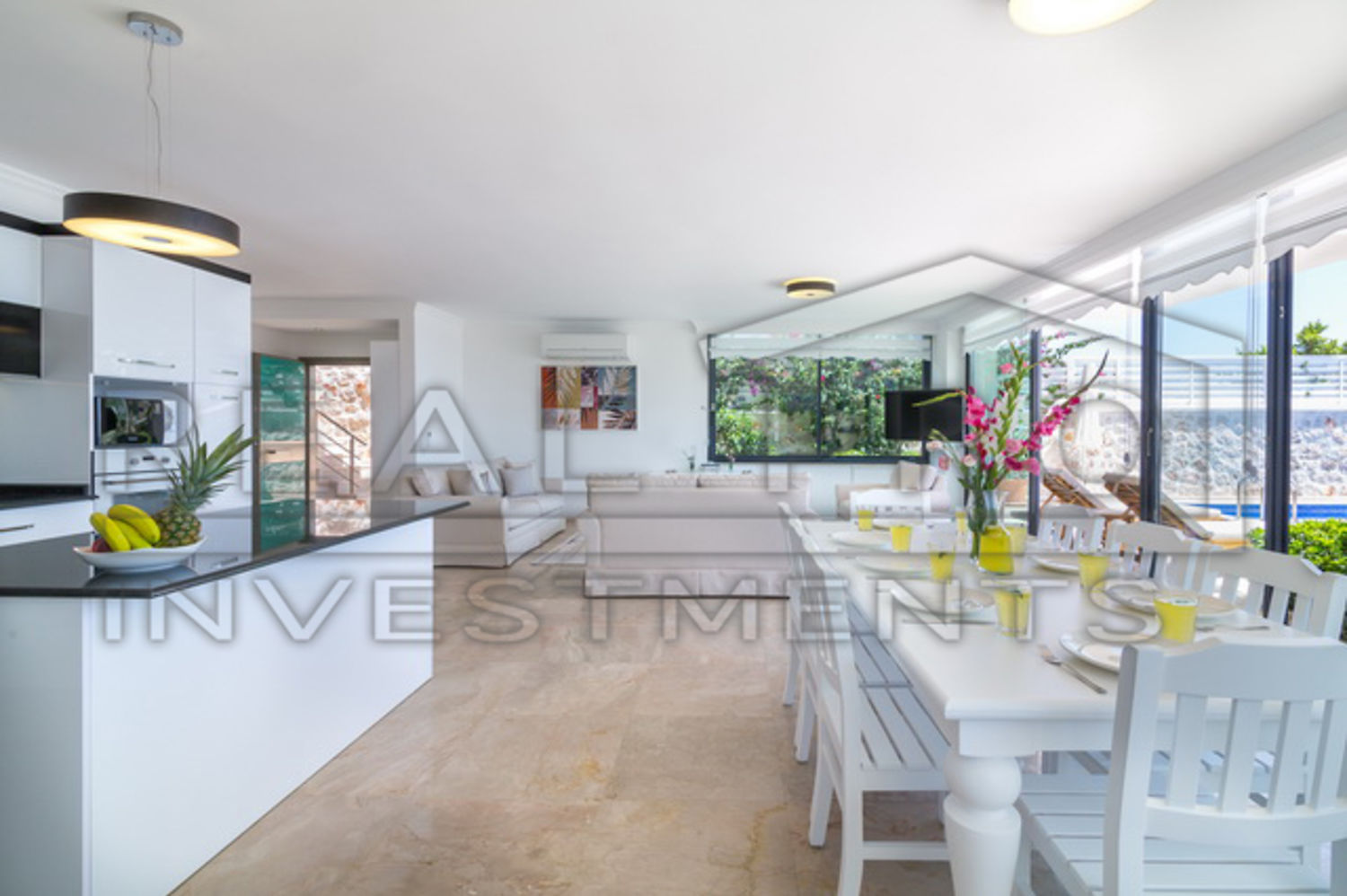 - Moderne, smaakvol ingerichte Kalkan villa met een uitzonderlijk grote privé tuin en privé zwembad op een perceel van 1100 m² gelegen op een heuvel met prachtig panoramisch uitzicht zowel vanuit de tuin als vanuit de villa zelf, binnen- en buitenleven lopen naadloos in elkaar over dankzij de grote terrassen met zowel schaduwrijke - om buiten de dineren bijvoorbeeld - als zonovergoten plekjes