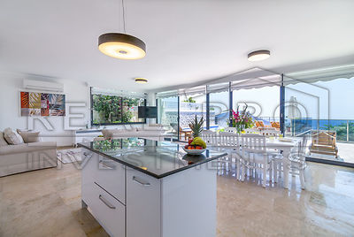 - Op de eerste en tweede verdieping vier slaapkamers - waarvan twee met en-suite badkamer - en alle slaapkamers hebben een privé balkon met zeezicht, op het dak van de villa is er nog een zeer groot dakterras