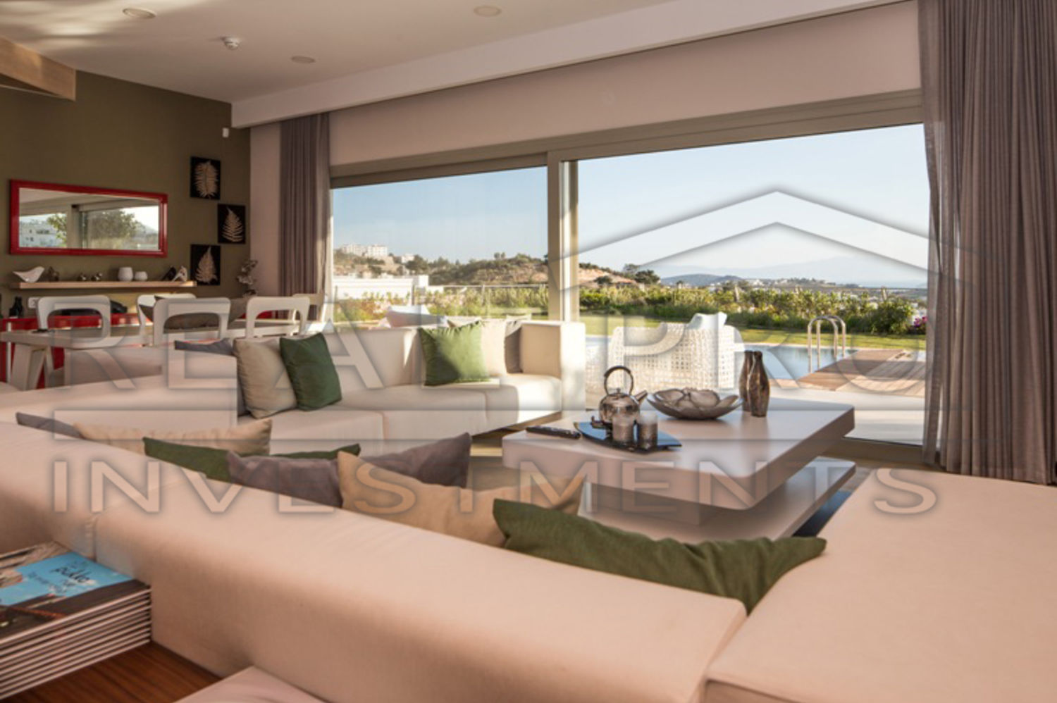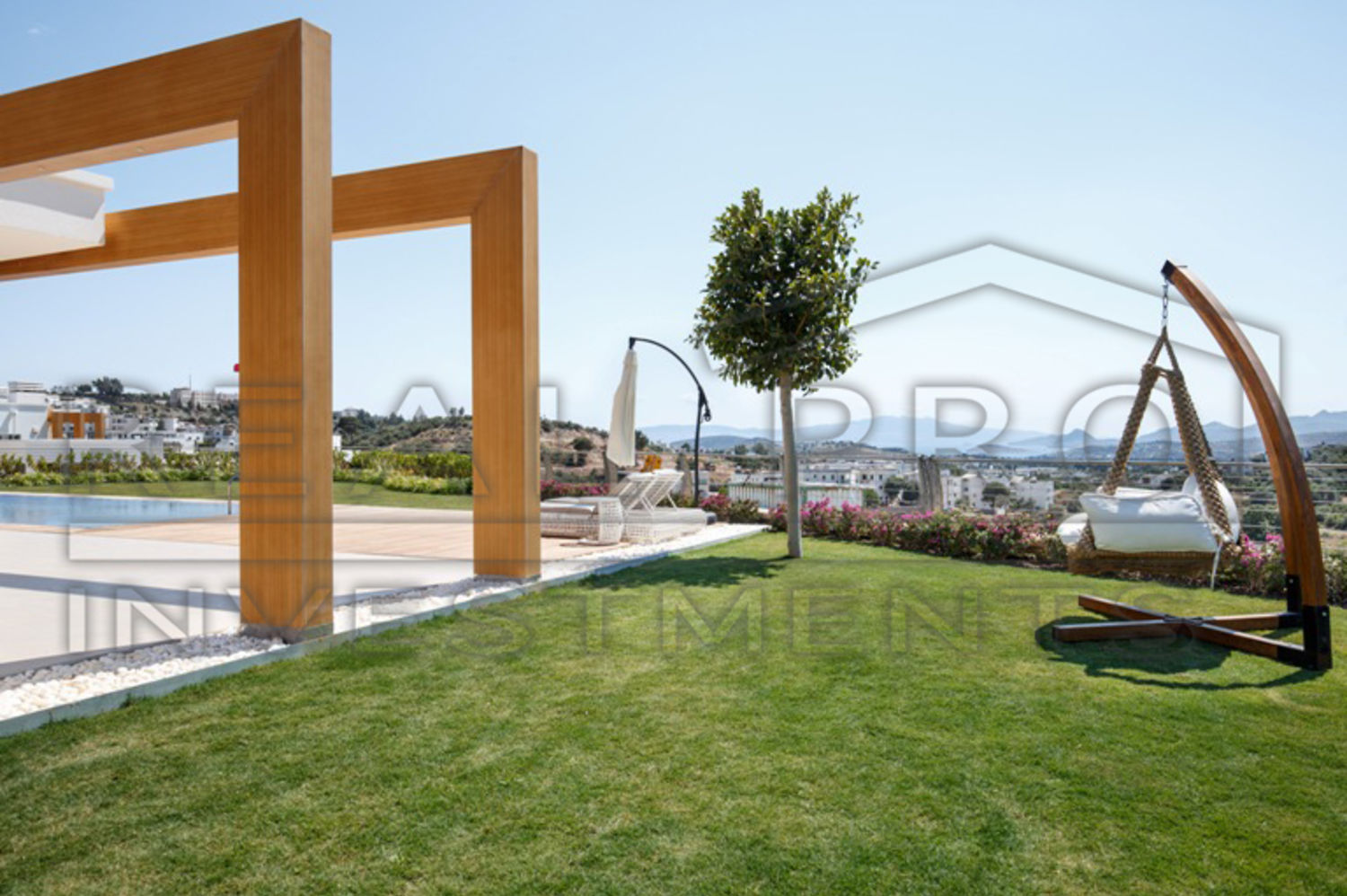 - Elke villa staat op een eigen perceel van 700 m² met aangelegde tuin en privé zwembad, panoramisch zeezicht, zeer veel lichtinval dankzij de grote schuiframen, ruim terras, master bedroom met ensuite badkamer en dressing, luxe keuken met kookeiland, apart gastentoilet