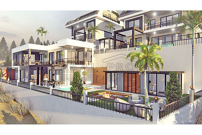 - Het villacomplex is gebouwd op een perceel grond van 1238 m² en bestaat uit 3 vrijstaande villa's. Deze luxe villa's zijn zodanig ontworpen om hun bewoners maximale privacy te bieden en beschikken over comfortabele voorzieningen zoals liften en privé overloop zwembaden, privé sauna en fitness, privé Jacuzzi, privé parking, een privé tuin met barbecuevoorzieningen enz.