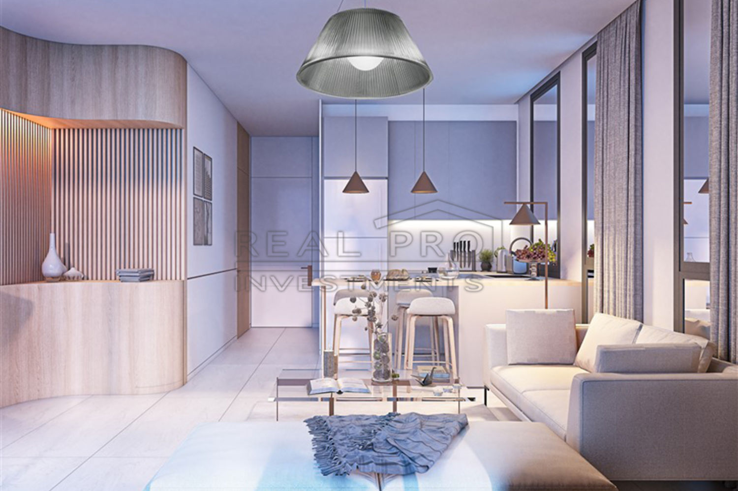 - Het appartement met een totale oppervlakte van 59 m² heeft een open keuken gecombineerd met een woonkamer, een slaapkamer, een badkamer en een balkon. De projectontwikkelaar gebruikt bij de constructie uitsluitend hoogwaardige natuurlijke materialen, zodat de inrichting van de appartementen aansluit bij de luxe uitstraling. Het appartement wordt opgeleverd aan de eigenaar met een fraaie afwerking, verlaagde plafonds met inbouwspots, stijlvolle vloeren, entree- en binnendeuren, een ingebouwde keuken en een volledig ingerichte badkamer.